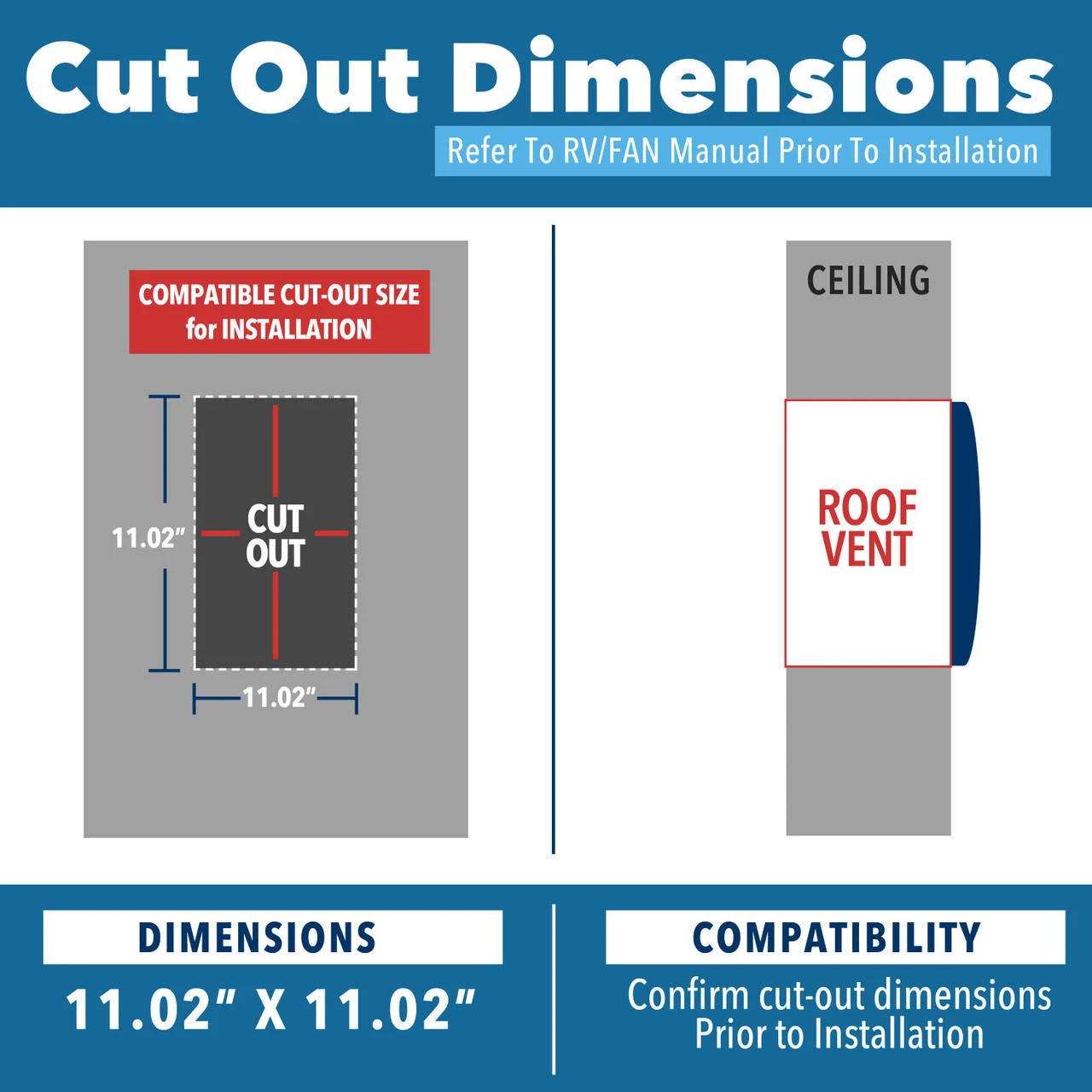 Cut Out Dimensions: 11.02″ X 11.02″