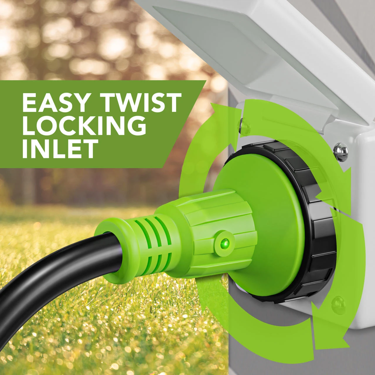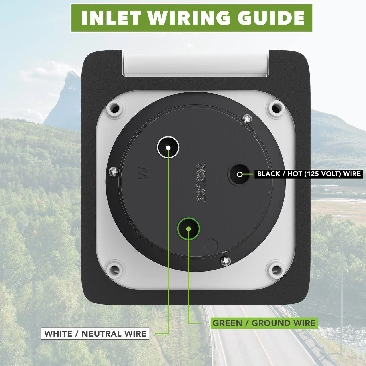 30A RV Power Cord Twist Lock Inlet is Stylized UV resistant non-metallic shore power inlet has white Centrex cover which makes unit weatherproof when completely closed. Interior has easy-to-wire terminations