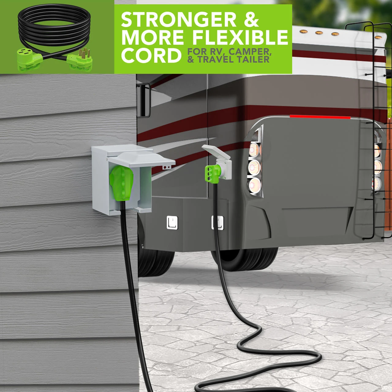 50 Amp RV Power Extension Cord With LED Power Indictor – 50 Amp Male To 50 Amp Female Standard Plug 15 Foot