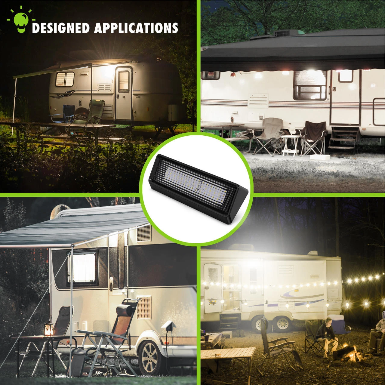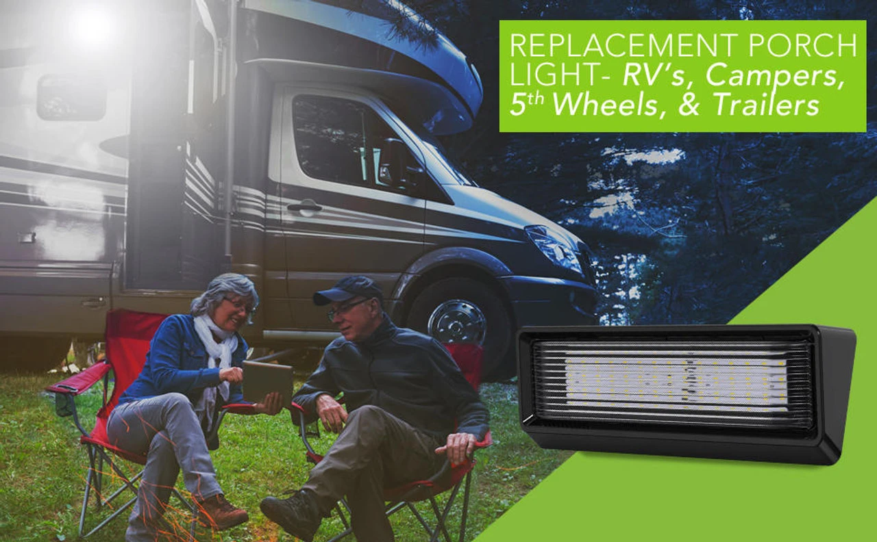 LED RV Exterior Porch Utility Light XL 12v 650 Lumen Lighting Fixture Black Base