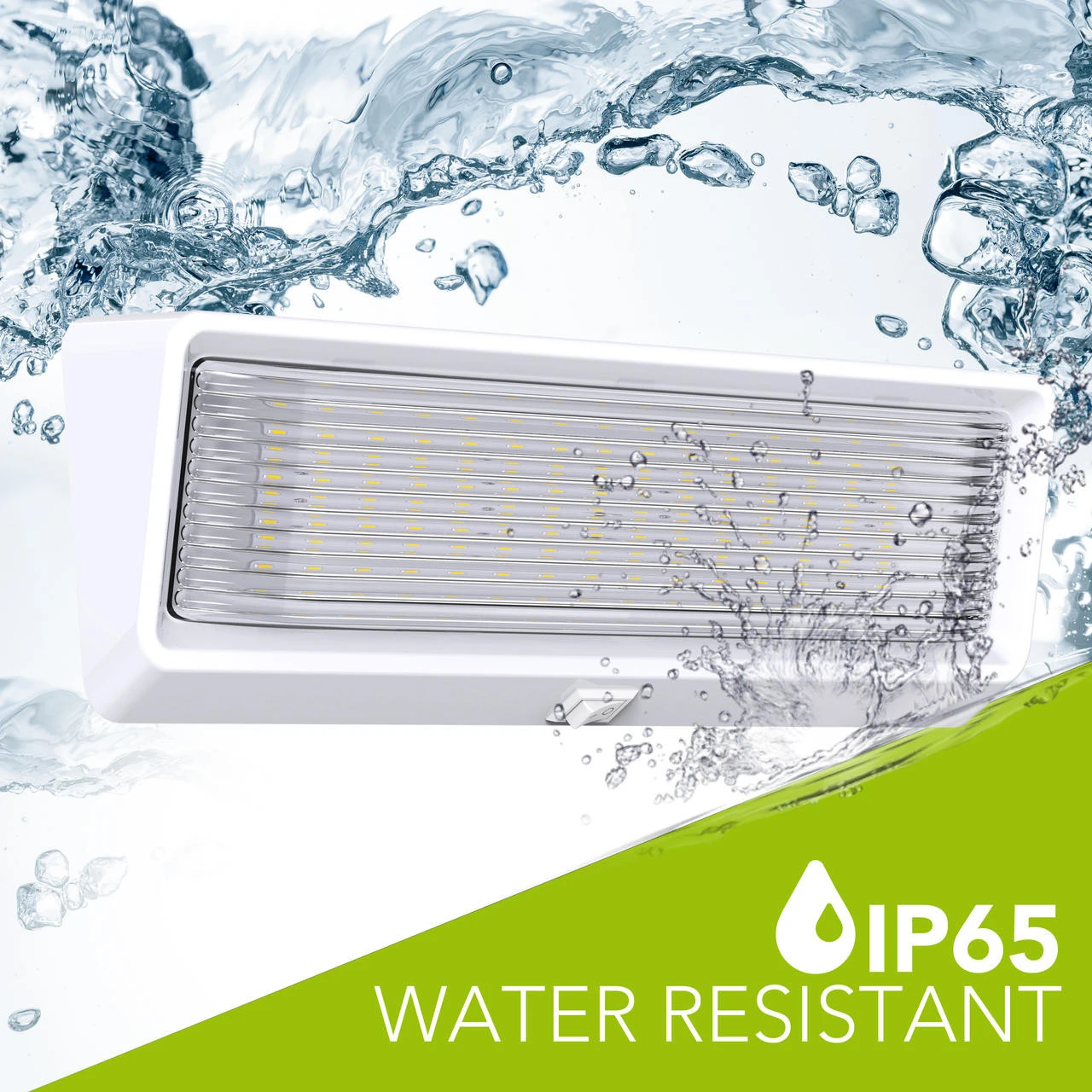 - Leisure LED 650 Lumens LED Rectangle Porch Light Fixture With Switch – Wide Voltage Range : 10-30 volts