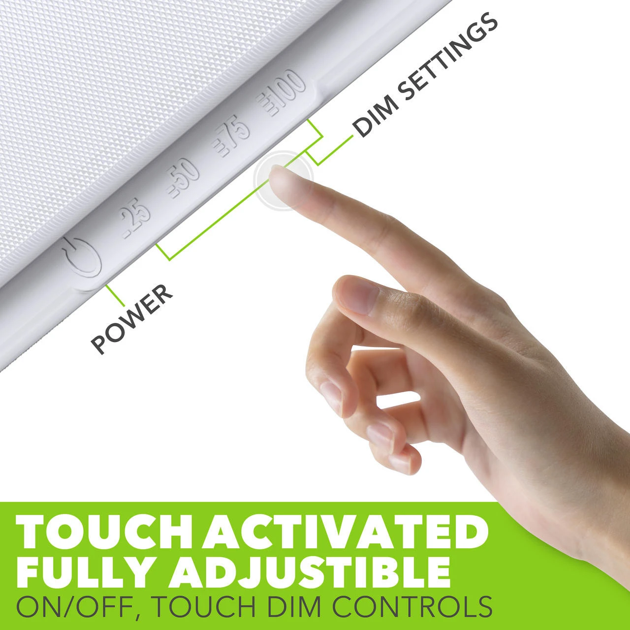 - Built in Touch to Dim Switch Design: switch enables you to go from Off to 25% – 50% – 75% – 100%; it adds great functionality to any area for lighting and it is widely used as perfect replacement light for older fluorescent tube light fixtures. Much Slimmer for more overhead space.