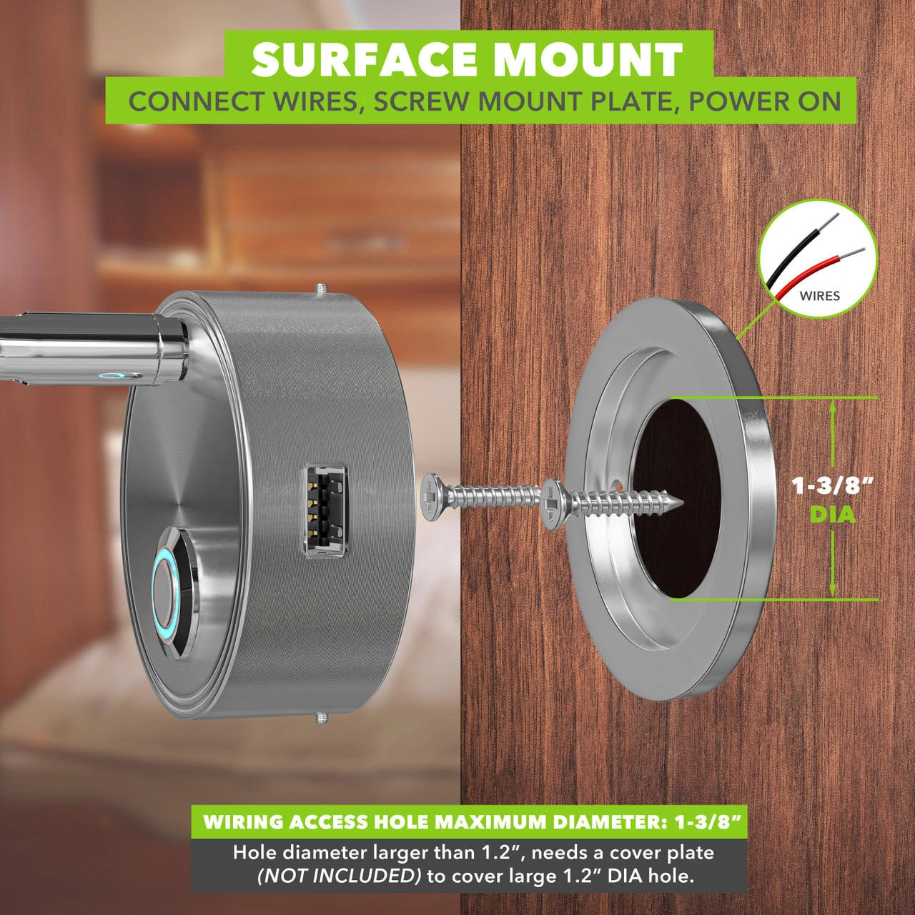 Wiring hole maximum hole diameter- 1-3/8”, hole diameter larger than 1.2” needs a cover plate (not included) to cover large 1.2” diameter hole.