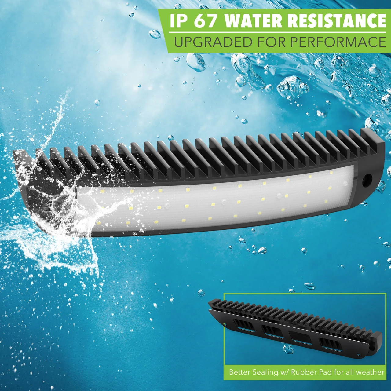 Rigid aluminum alloy light housing makes it in high-standard quality as IP67 rating in waterproof, dustproof & shockproof. E-mark, CE and RoHS compliance long lifespan as 50,000 hours as 3 times longer than fluorescent fixtures.