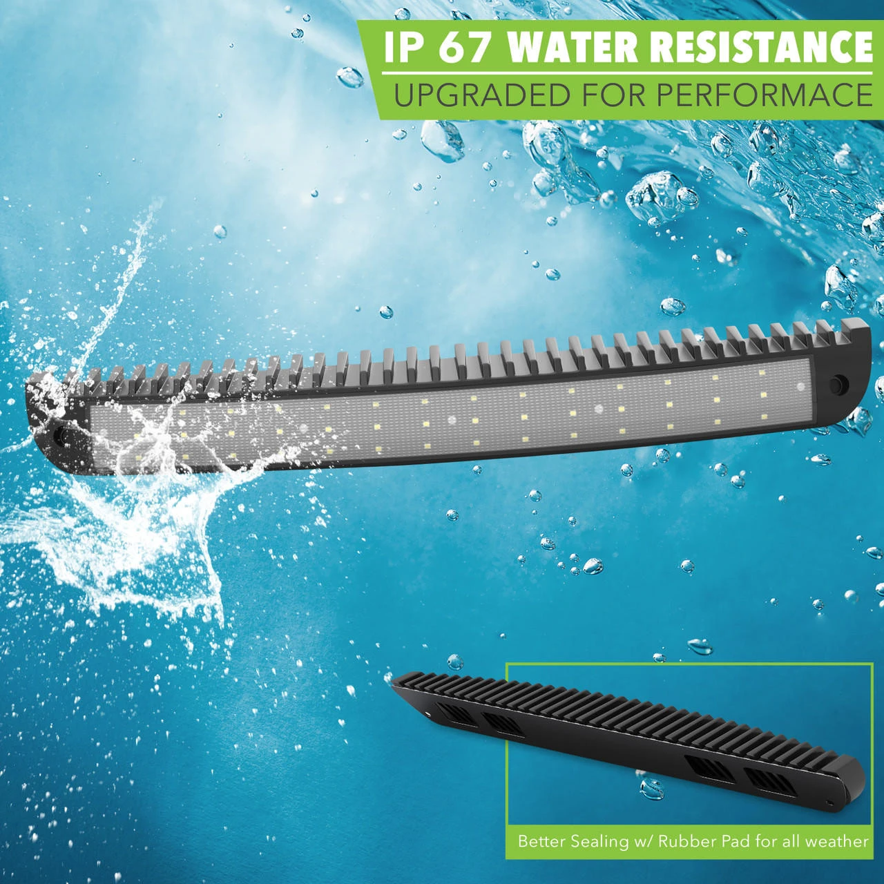 Rigid aluminum alloy light housing makes it in high-standard quality as IP67 rating in waterproof, dustproof & shockproof. E-mark, CE and RoHS compliance long lifespan as 50,000 hours as 3 times longer than fluorescent fixtures.