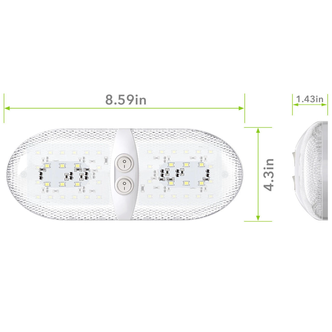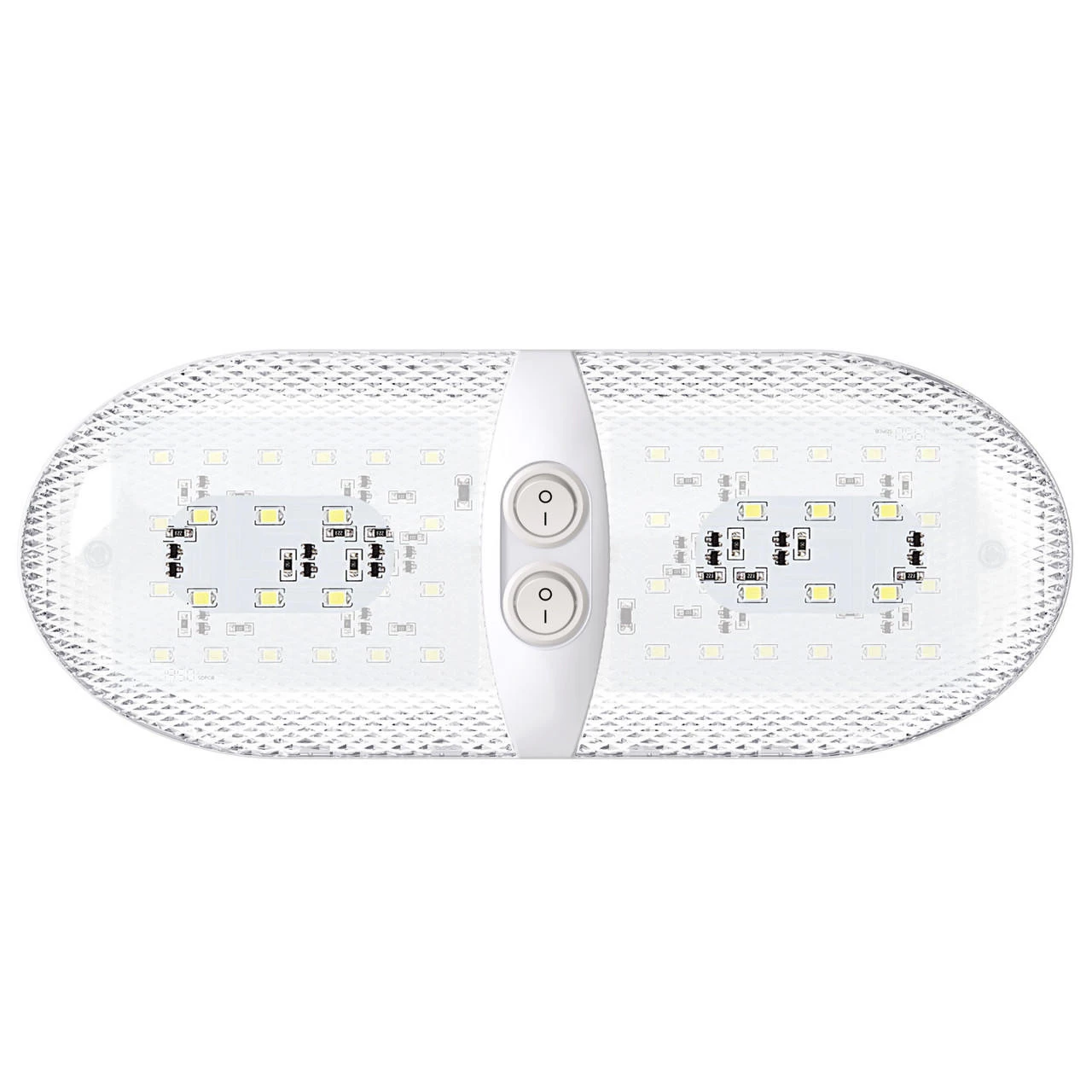 Leisure LED RV LED Ceiling Double Dome Interior Light Fixture Euro With ON/Off Switch Natural White 6000-6500K 48-2835SMD