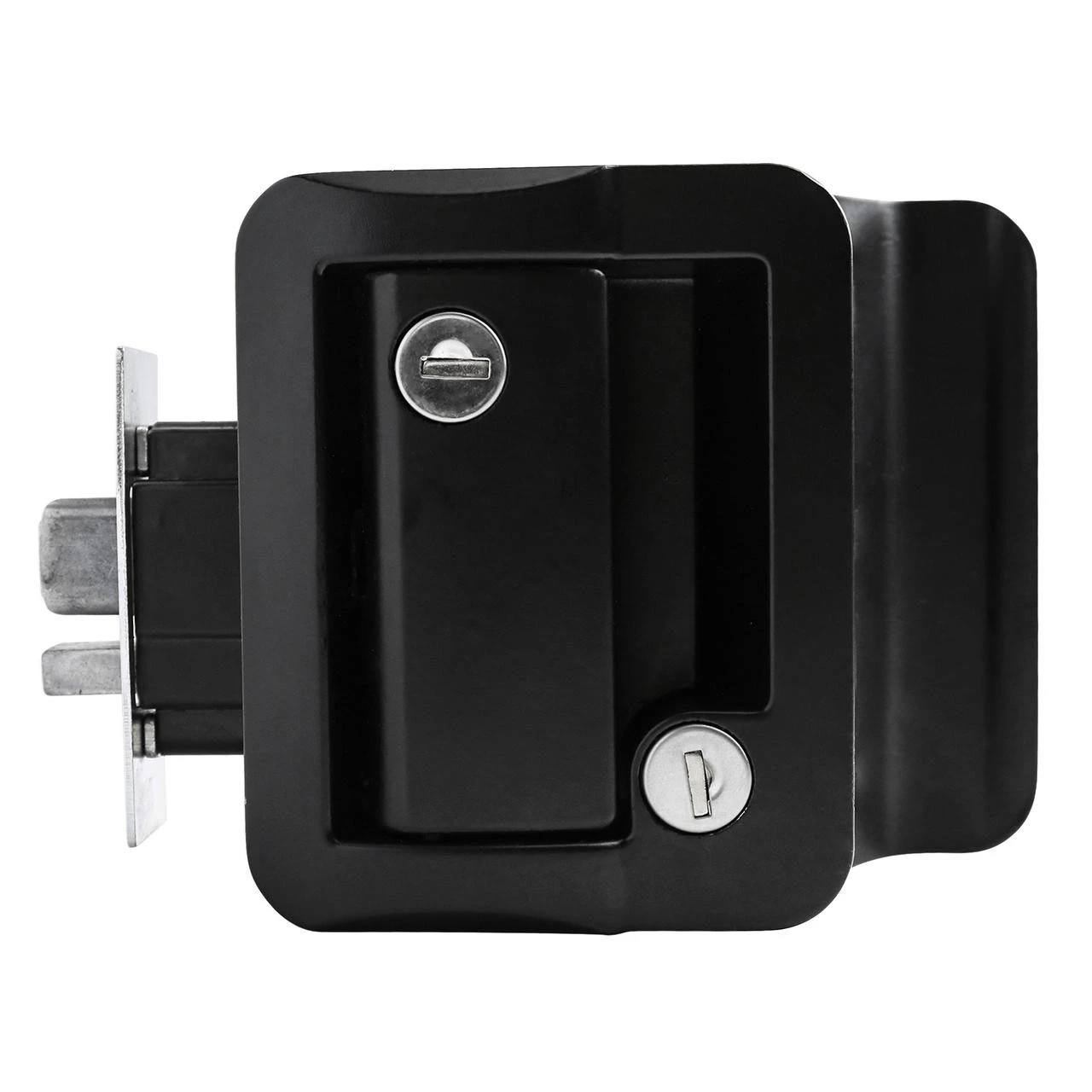This cool black lock replaces popular locks from Fastec, Global, and other brands, and fits most travel trailer doors. Please check the measurements provided before purchase. Protect your RV and yourself with this Leisure Locks black deadbolt entry door lock and travel with peace of mind.