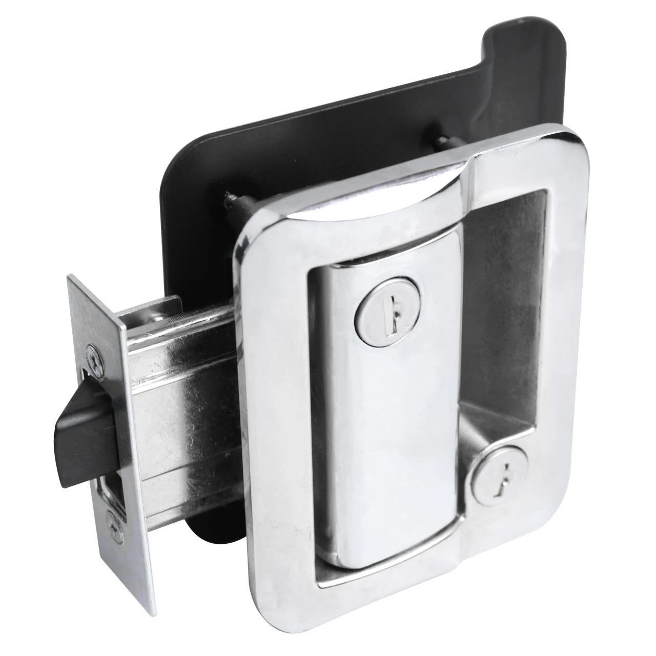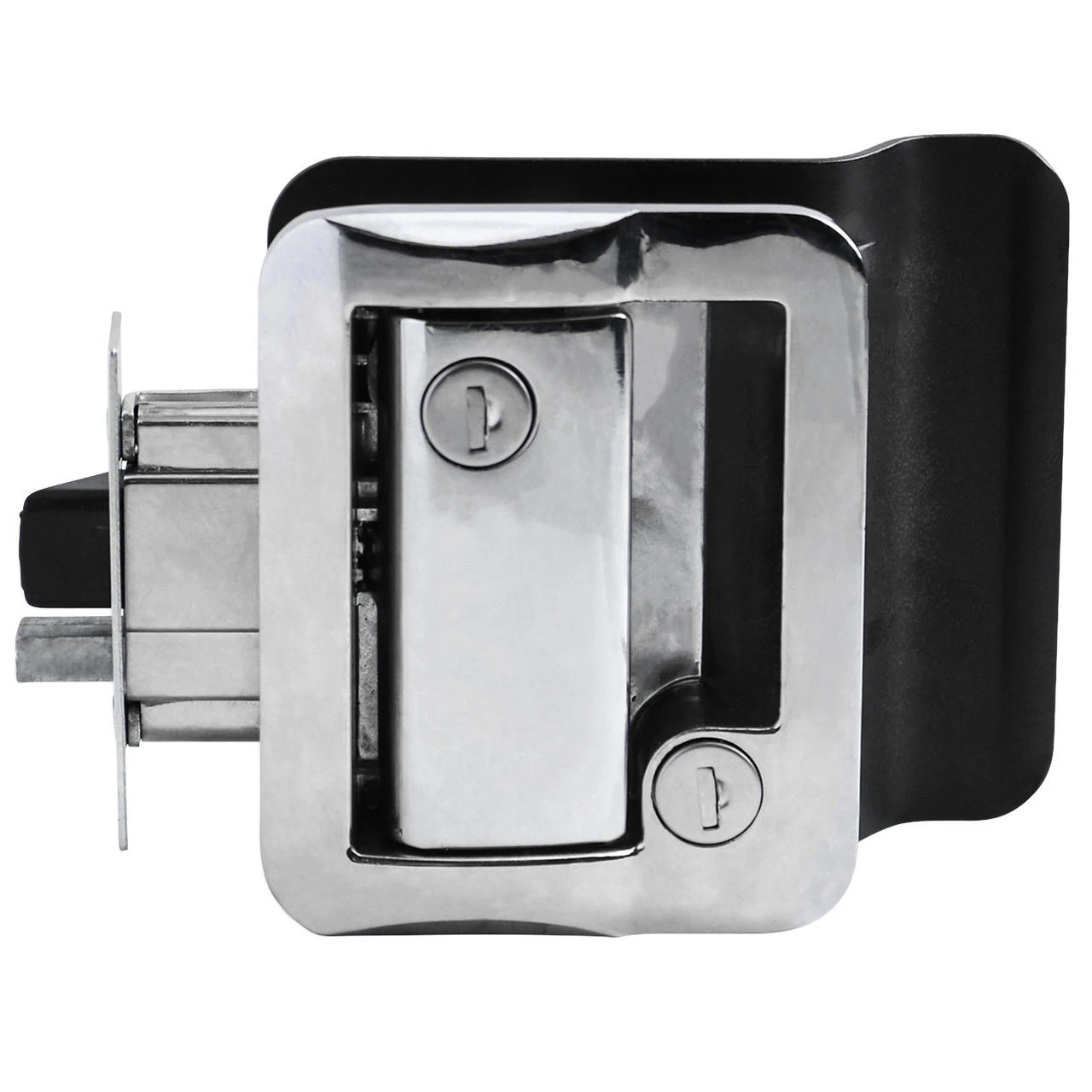 The chrome door lock is designed for travel trailers but also works well for custom utility trailers, horse trailers, and cargo haulers. It fits most RV doors but please check the measurements below.