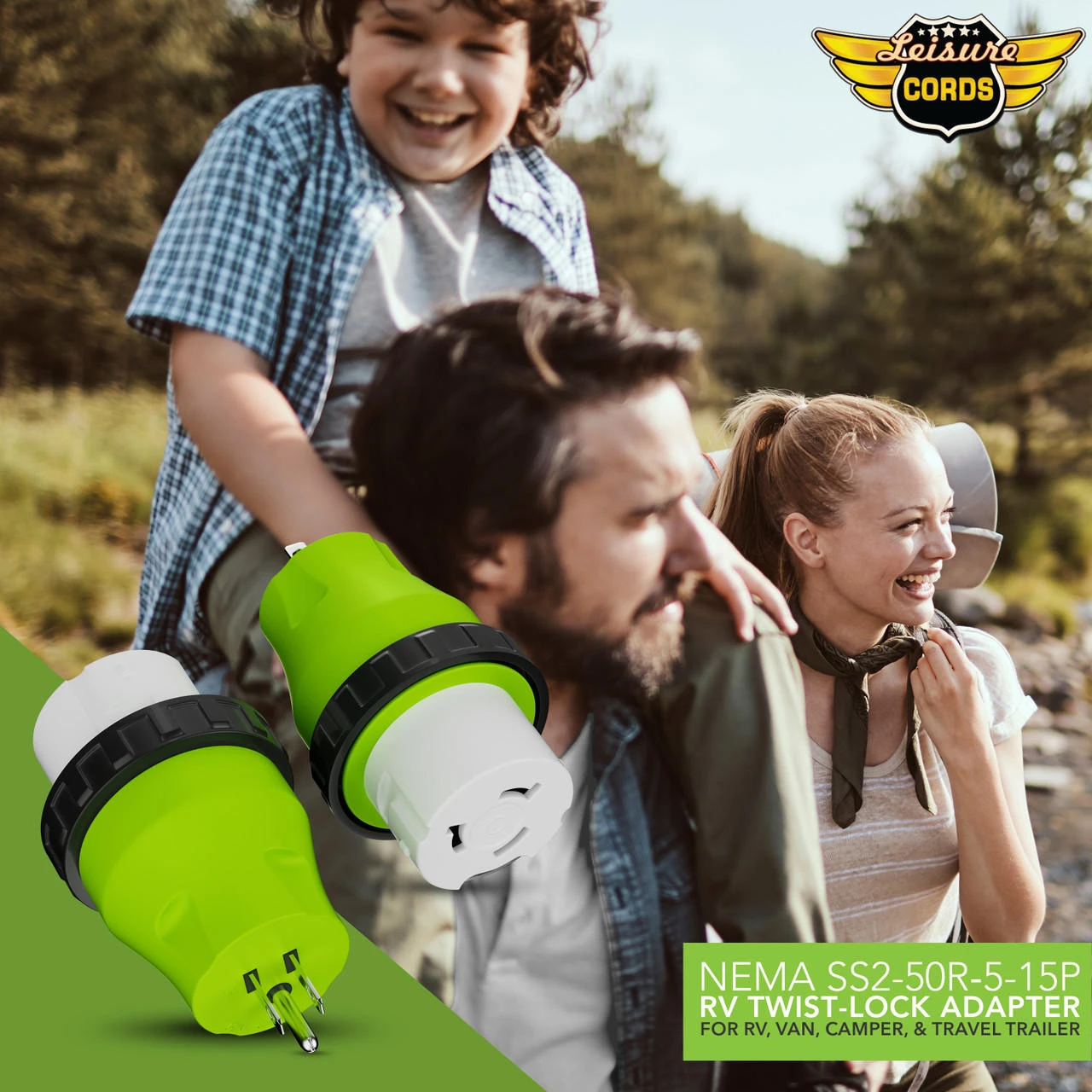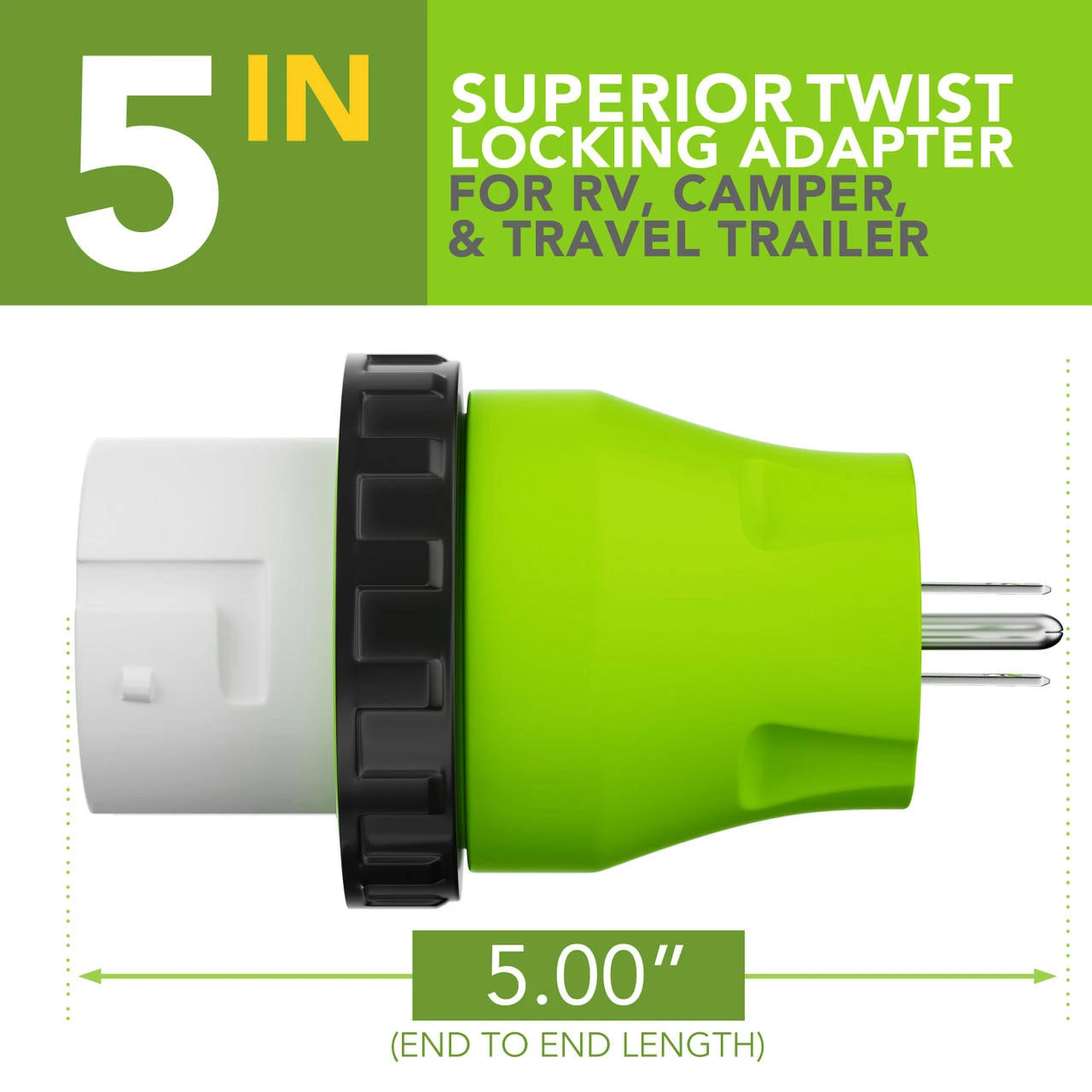 Product Details The Leisure Cords RV Power Cord Electrical Locking Adapter easily converts your plugs and quickly get back to business. Works great for for RV applications as well as 50 AMP female adapter