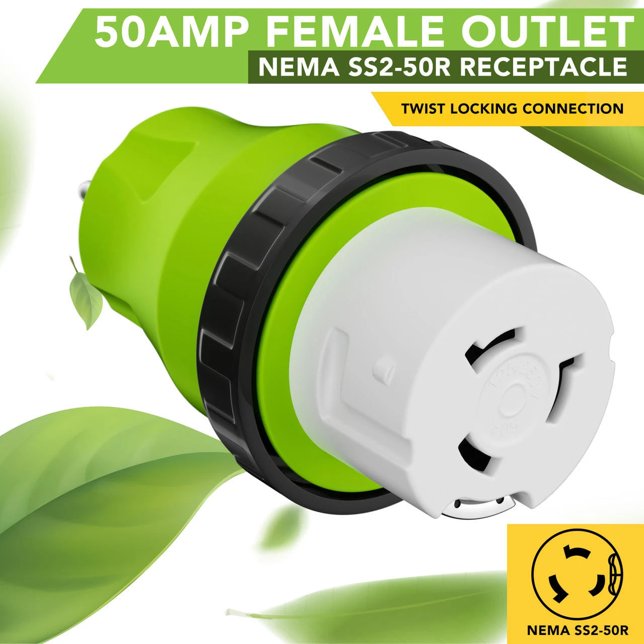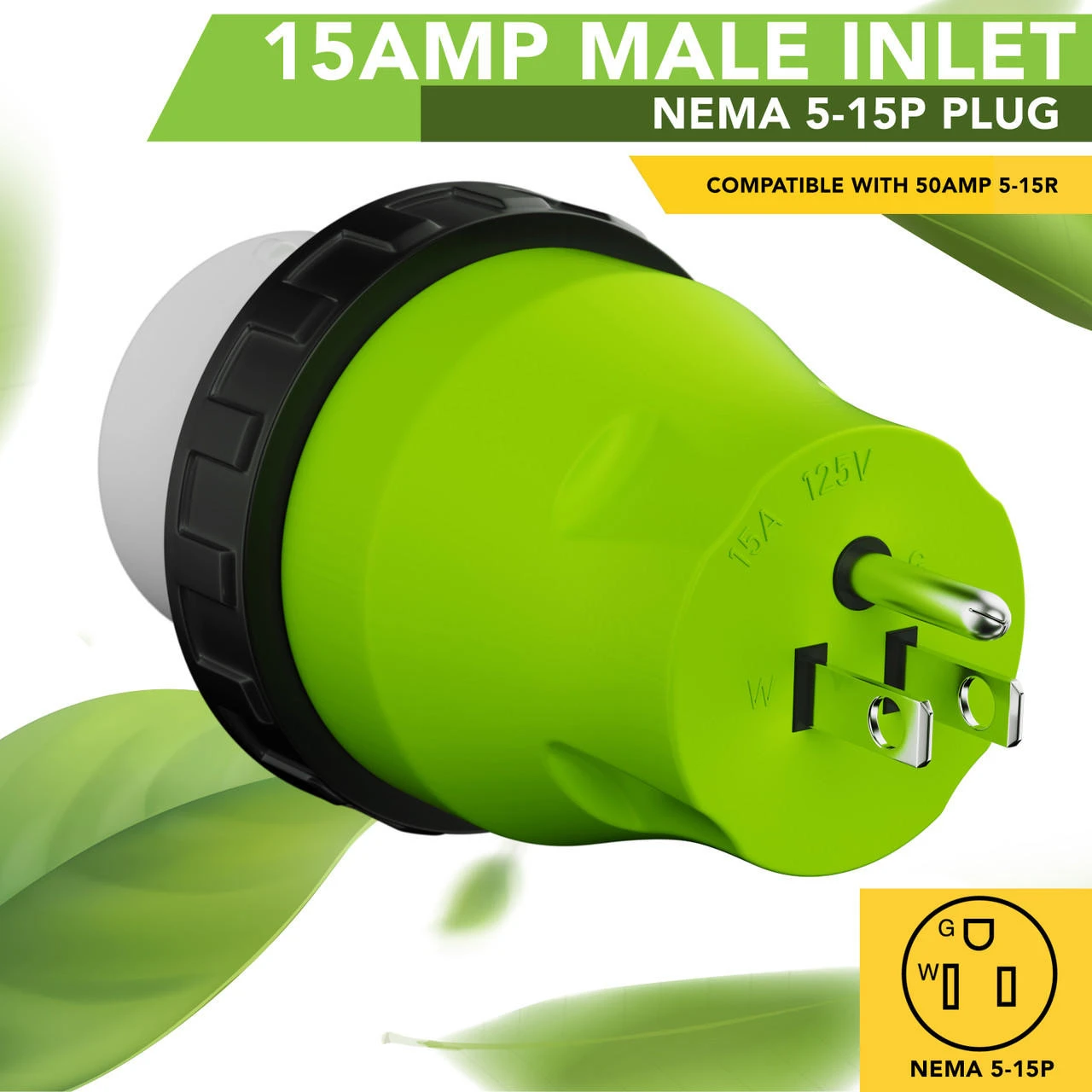 Locking Power Cord Adapter 15A Male To 50Amp Female Twist Power Cord Male To Female Camper Generator Cable Adapter Electrical Converter Plug