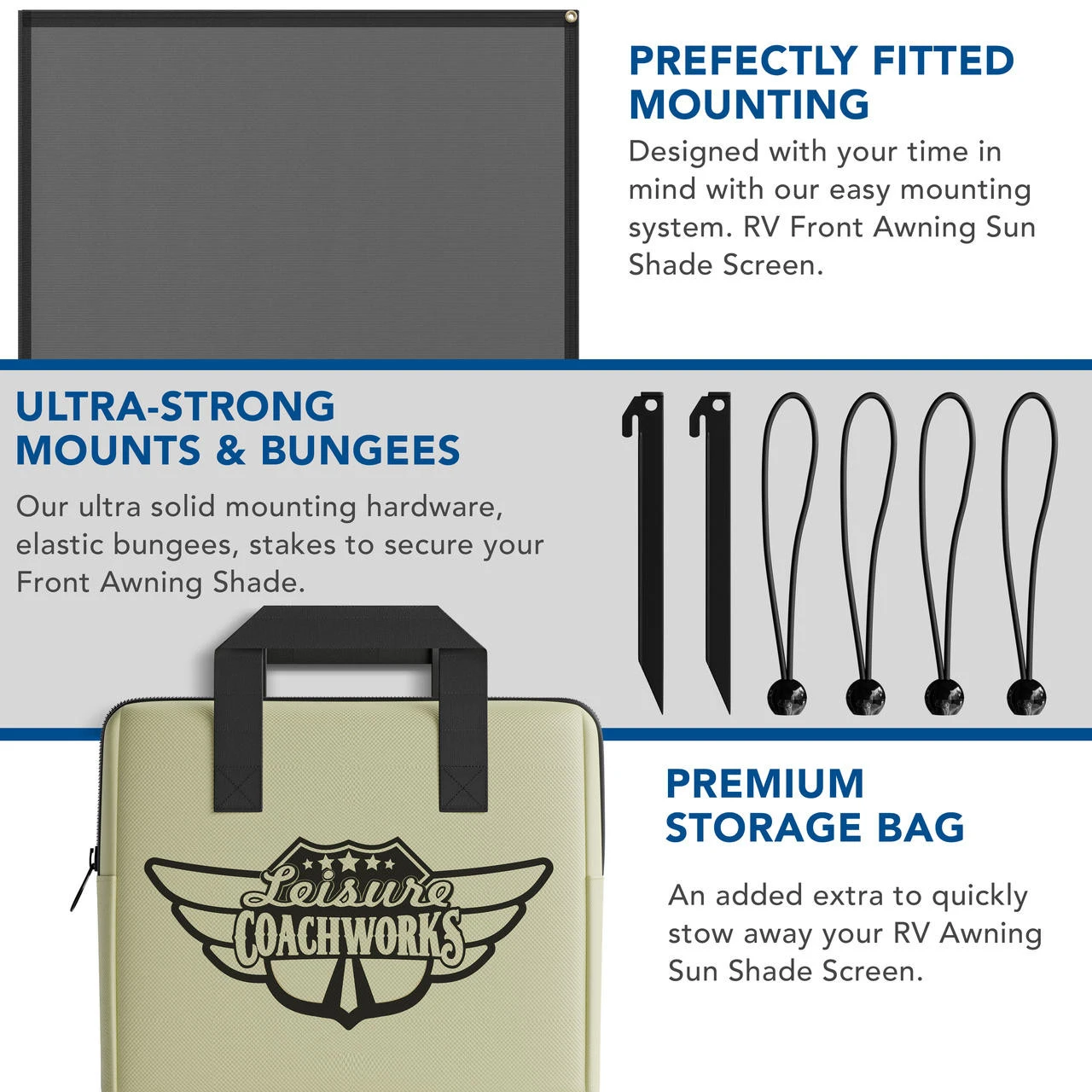 - UV BLOCK & OPEN VIEW – Used as front RV awning, blocks about 86% of UV to protect your skin and eyes. Meanwhile offers a wide view.