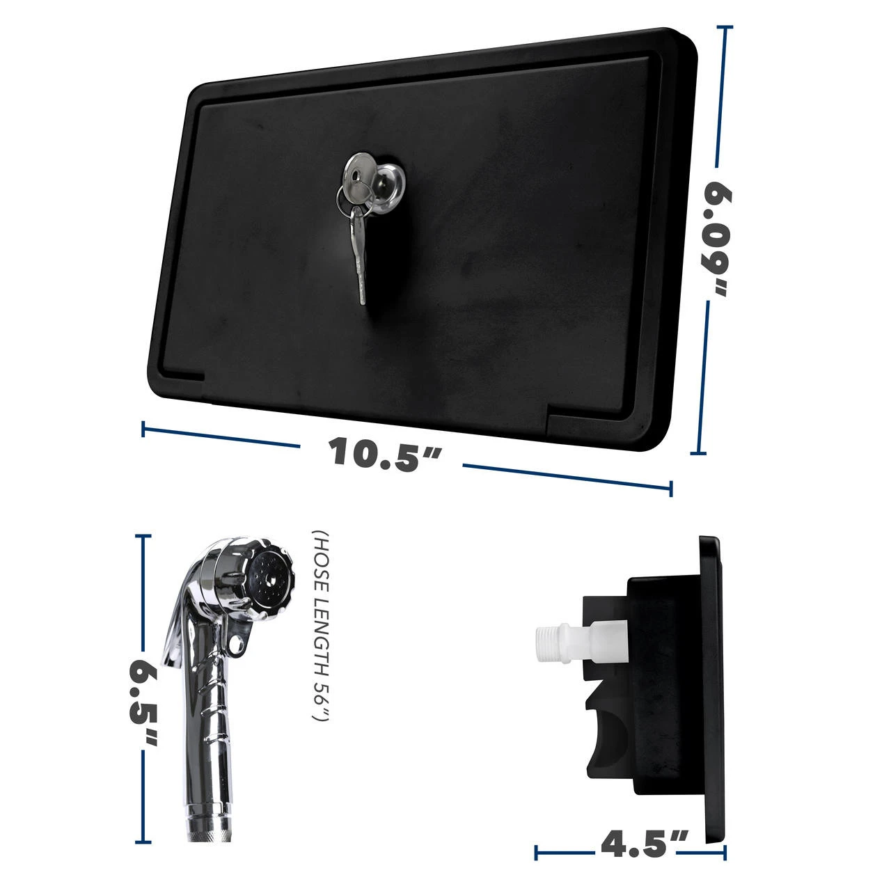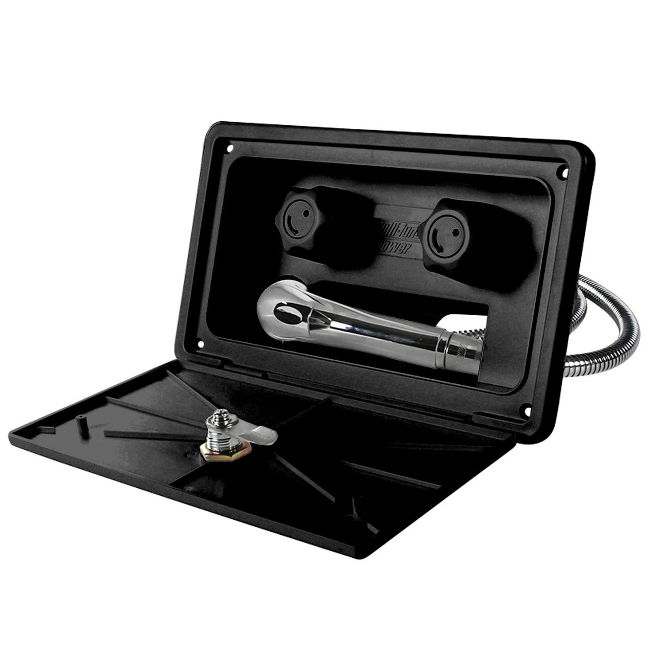 This all-in-one unit includes a shower faucet, shower hose and shower wand in a lockable box. You can be confident about always having all your cleaning tools sanitary when you need them.
