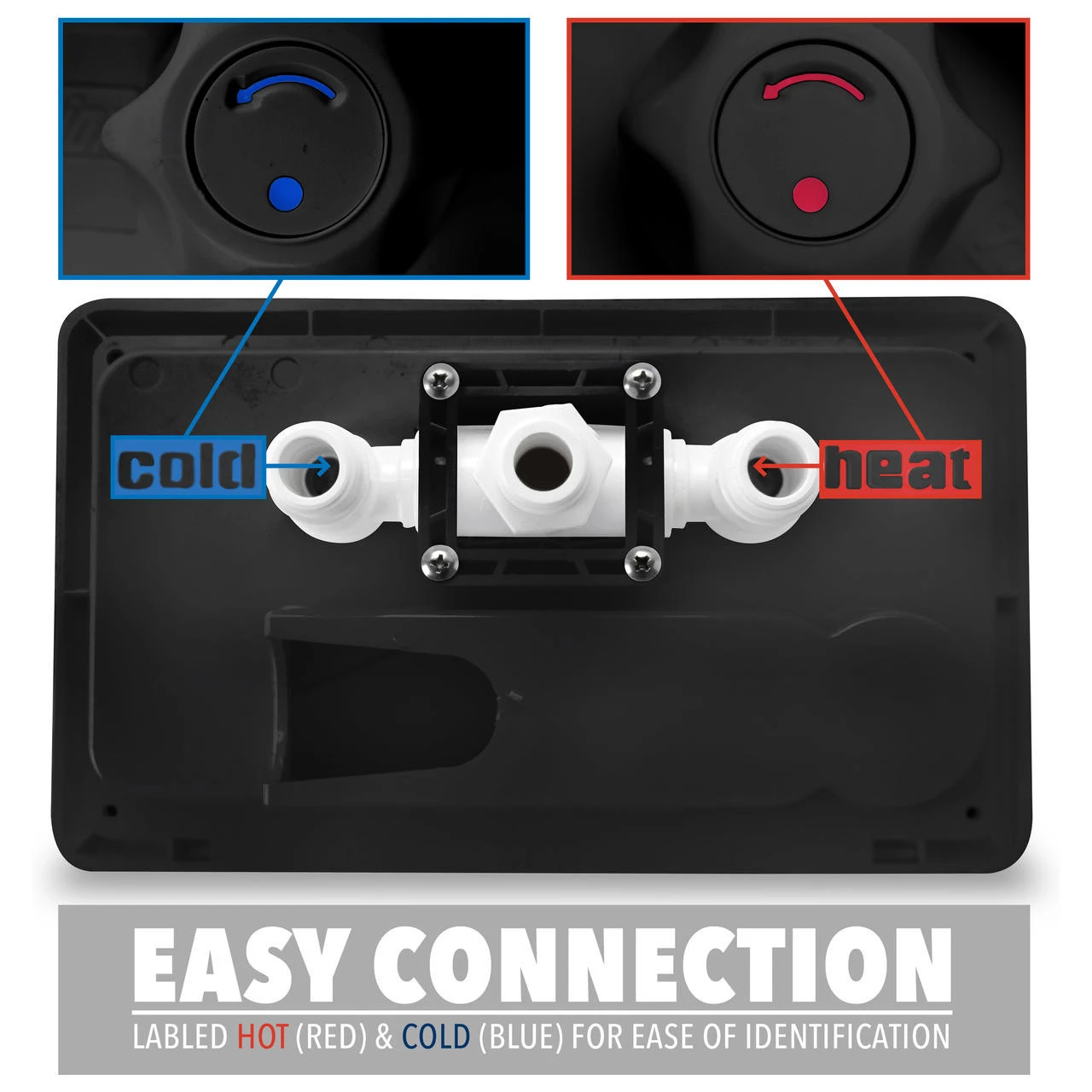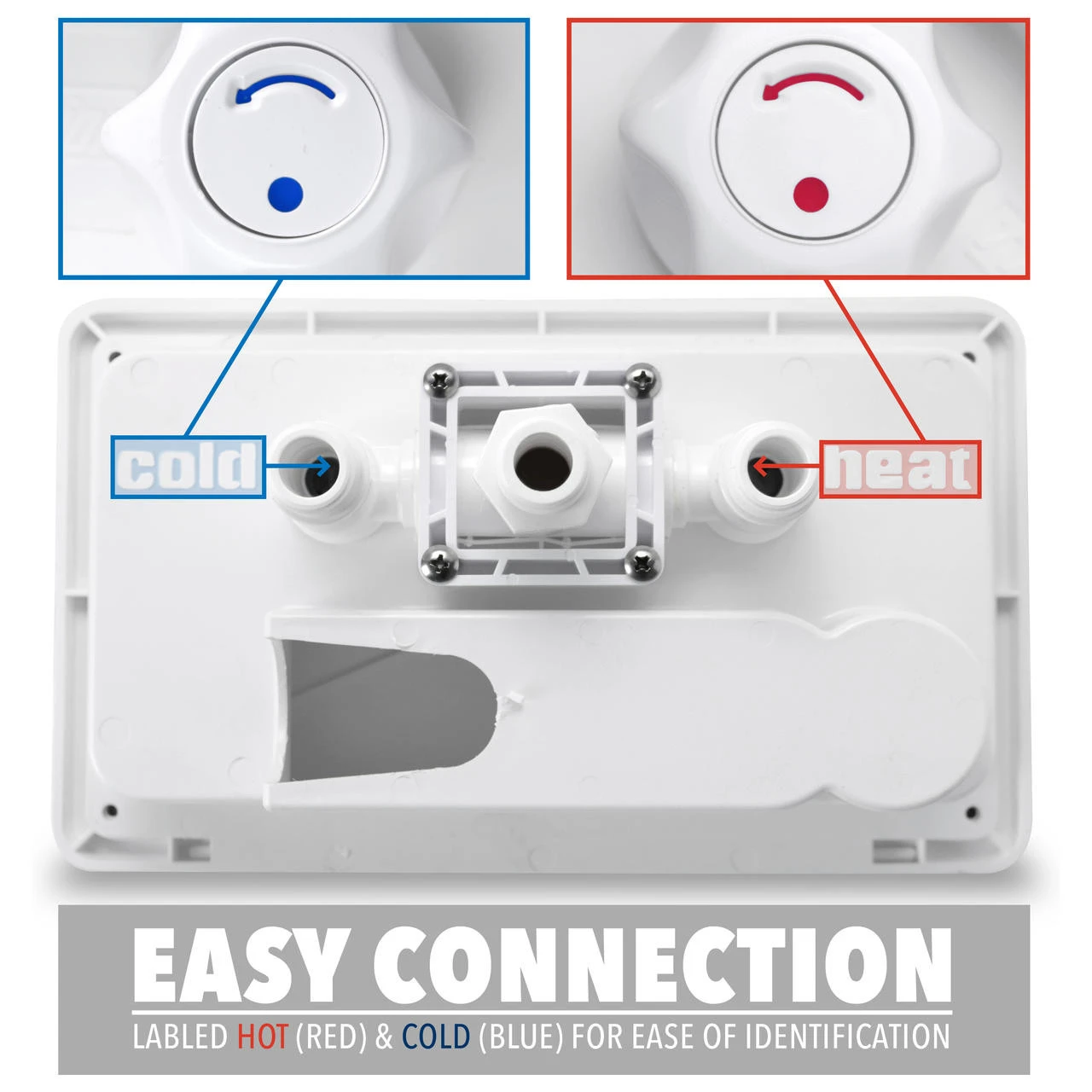 - Space Saving 90 Degree Elbow connection to water source.