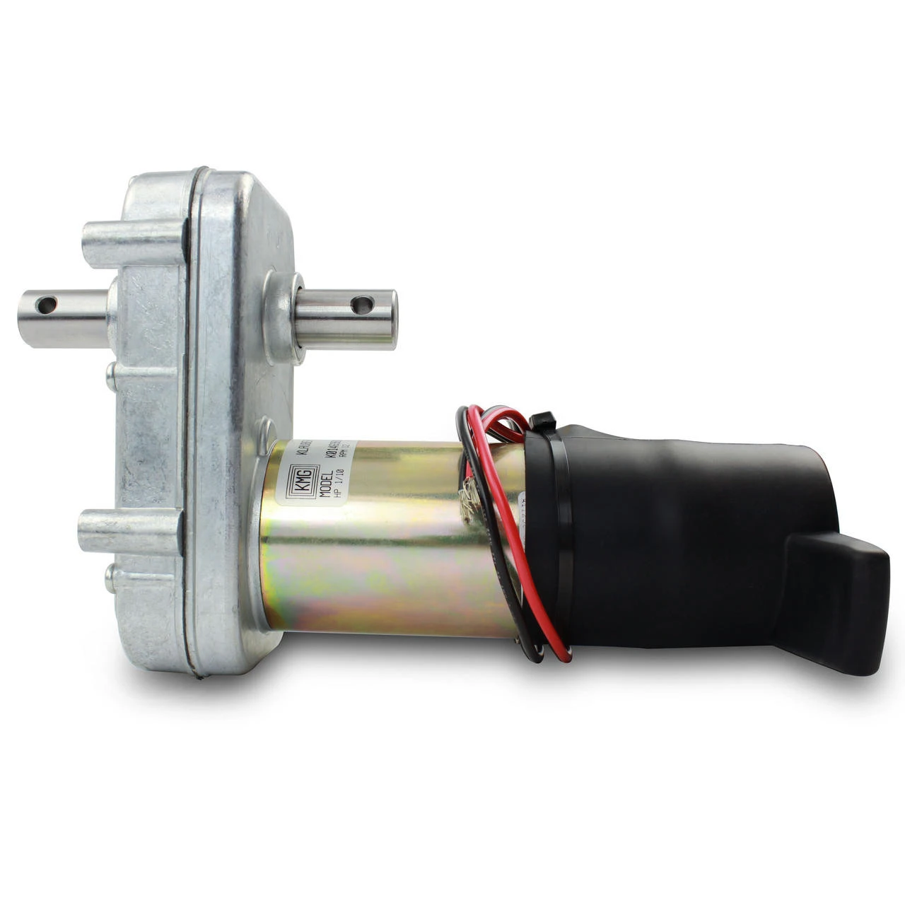 New, permanent magnet, parallel shaft gear-motor. Cast aluminum gear housing and motor end cap with steel motor frame. 12 VDC electro-mechanical brake on rear of motor with manual release lever.