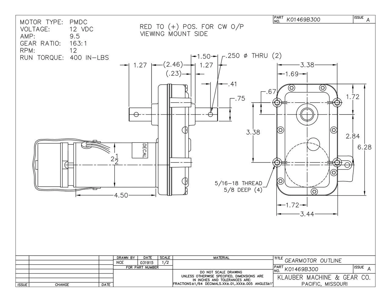 - Speed 6 RPM @ 850 in-lbs, 25 Amps